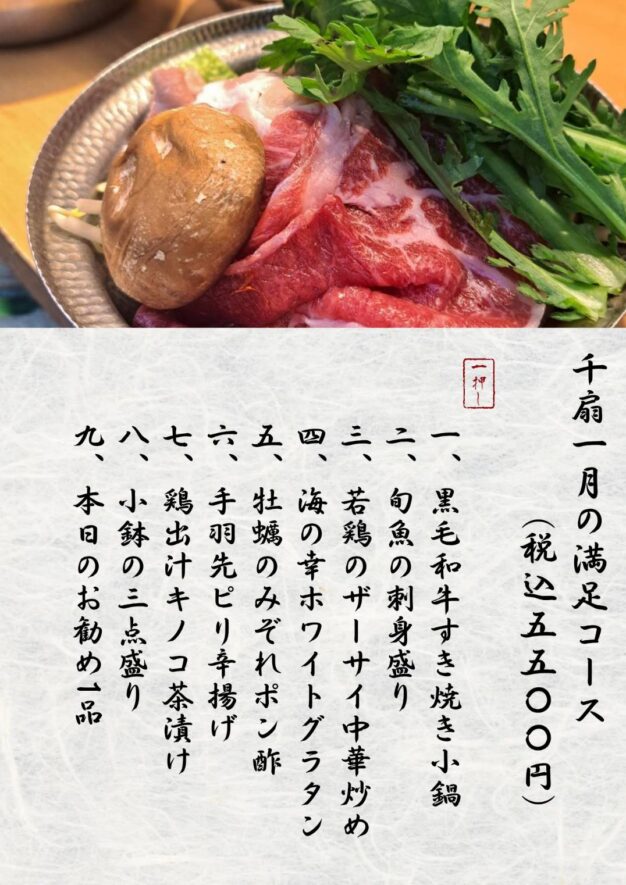 千扇旬のもの満足コースは大好評につきまして