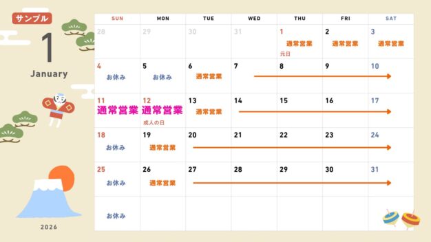 今月の営業カレンダーです
